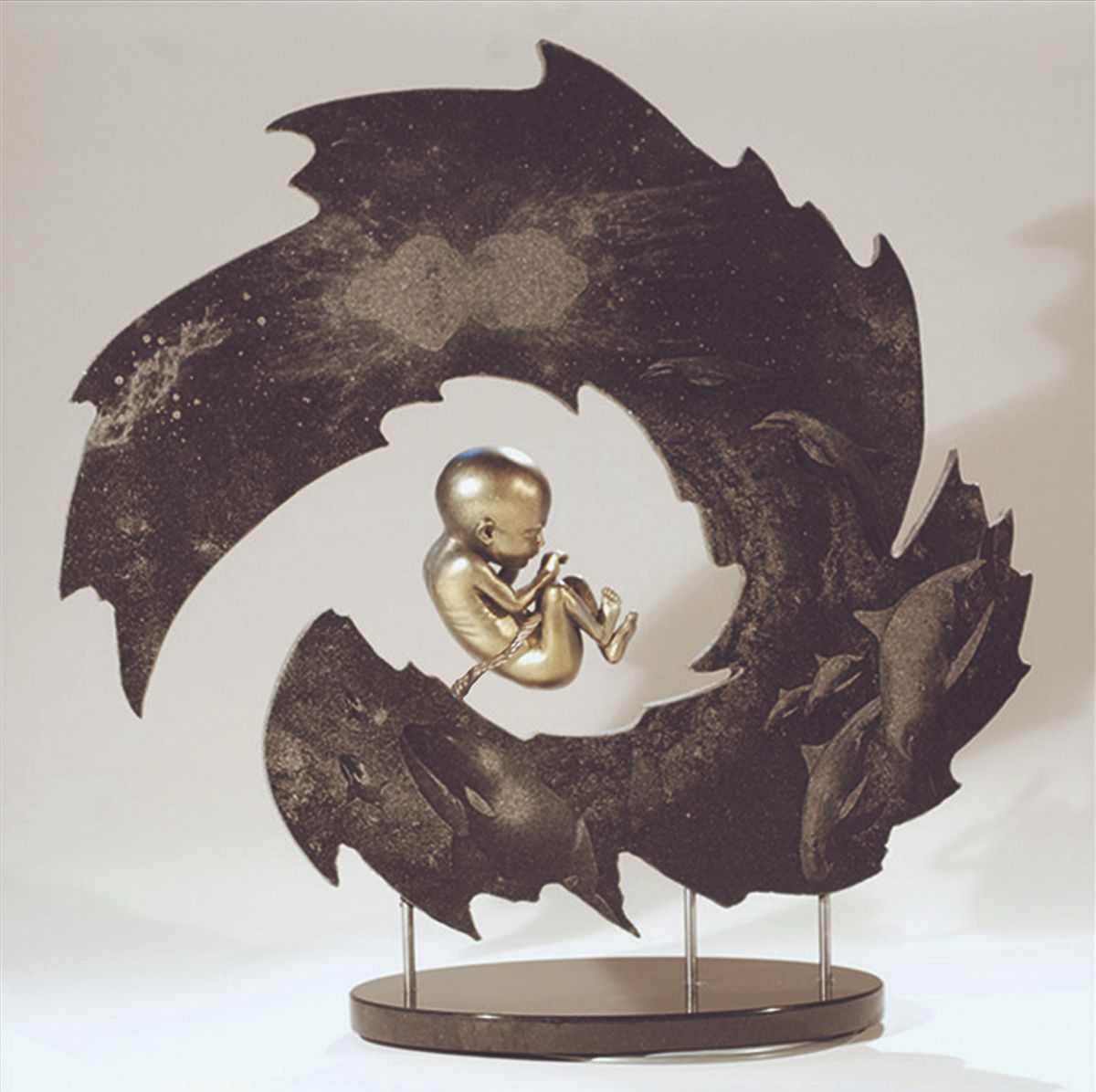 Julie Rotblatt-Amrany began her career in figurative art in 1985 while living in Pietra Santa, Italy, where she was part of a marble carving community. She completed her bachelor’s degree in art at the University of Colorado in 1980 and studied Sculpture and Art Education at the School of the Art Institute of Chicago between 1981 and 1986, where she returned to teach figure sculpting from 1995 through 2000. In 1989, she and Omri Amrany founded and developed the Rotblatt Amrany Studio, now located in Fort Sheridan, Illinois. Her work is in numerous collections, including those of the Adler Planetarium, the Chicago Bulls, the Los Angeles Lakers, and more. Her work is informed by scientific knowledge and advancements and the never-ending quest for expansion of human knowledge.