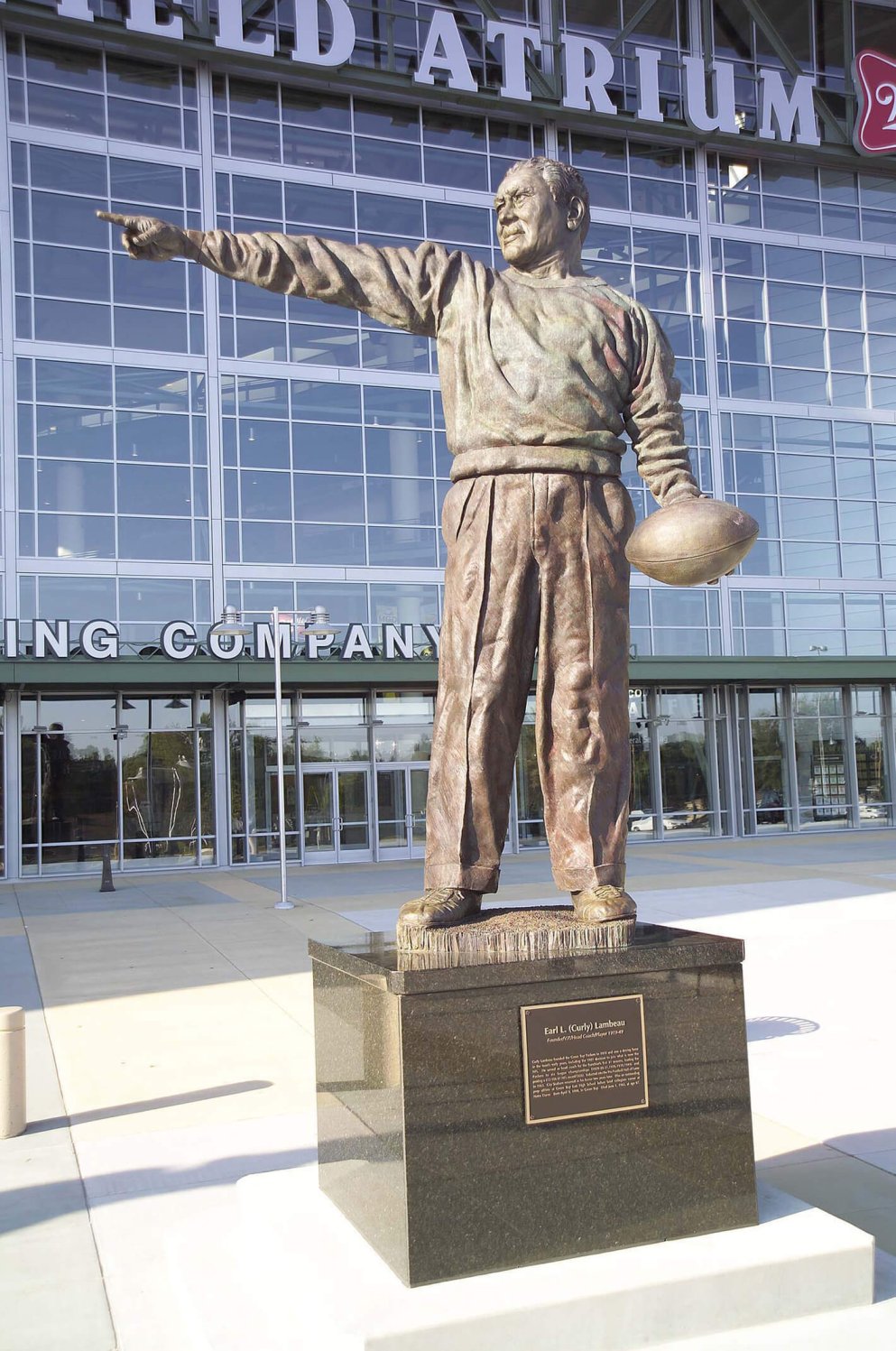 This grand 14’ bronze figurative statue that stands on a 6 foot-tall granite base welcomes the abid fans to Lambeau Field. Curly Lambeau alongside Vince Lombardi tower over the crowds of fans that walk by with respectful authority. Their legacy lives on through the fans that adore them as they visit Lambeau Field time and time again.